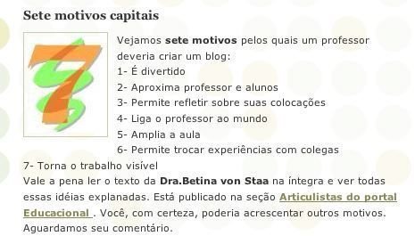 Puede que haya más, pero según Betina von Staa estos son los 7 motivos capitales por los cuales un profesor debería crear un blog.